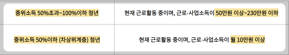 현재 근로활동 중이어야 하며, 근로 사업 소득이 월 50만 원 초과 ~ 월 230만 원 이하인 경우여야 합니다.